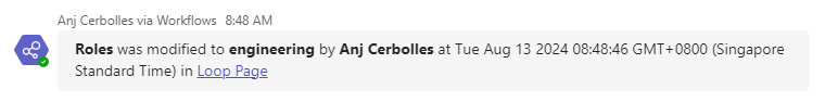 In-app notification for the rules will show you the details of what has been edited on the table and from what Loop workspace and page.